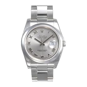 Stainless steel case and bracelet. Silver dial. Date displays at 3 o'clock position. Synthetic sapphire crystal. Deployment clasp. Case diameter 36mm. 31 jewel chronometer automatic movement. Water resistant at 30 meters (100 feet).